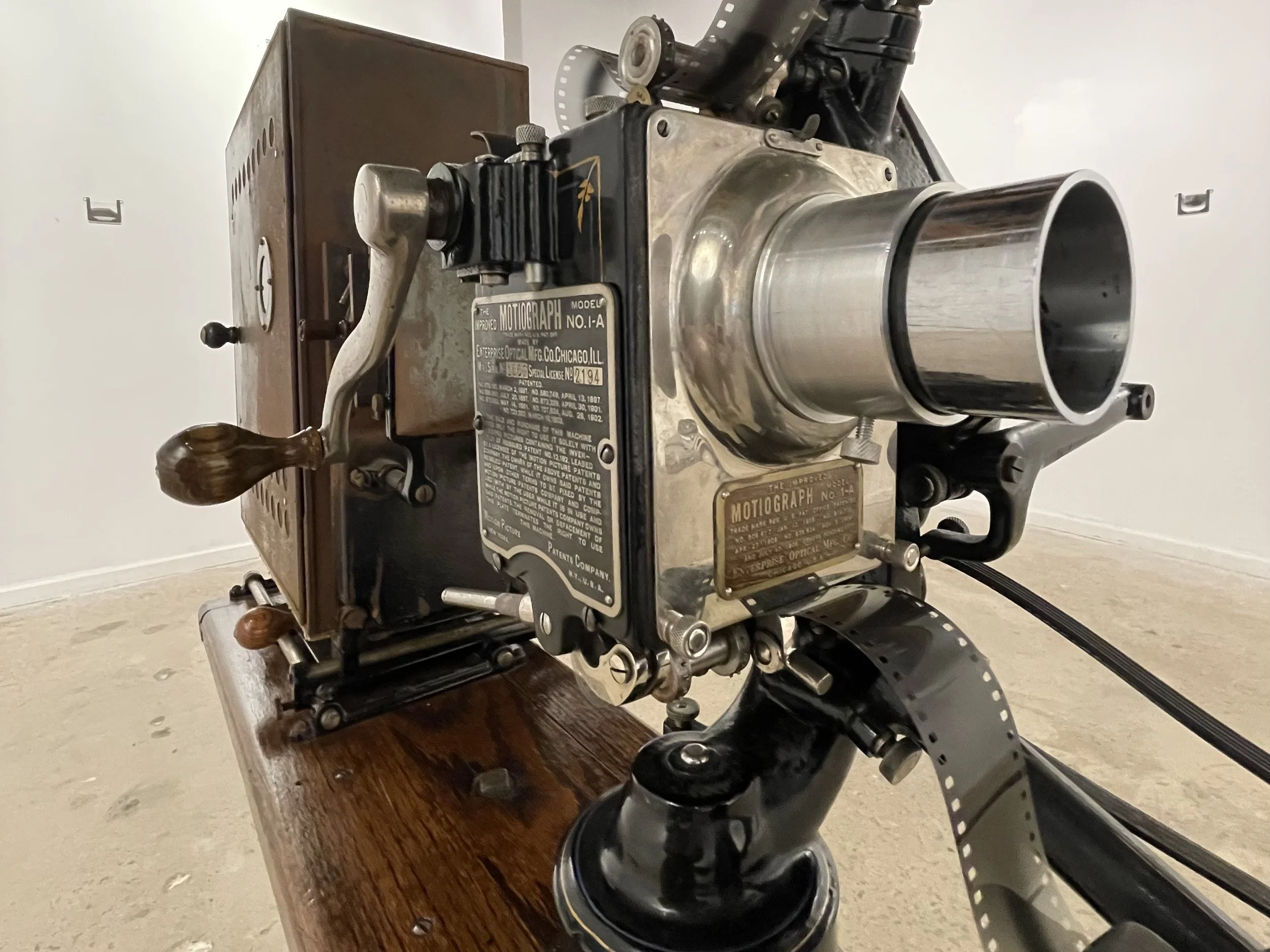 Kentucky Windage [2024] is instantly recognizable as part of Joseph Talerico’s few Motiograph appearances that have dominated cinemas and exhibition spaces since Talerico’s earlier works beginning in Mexico City, Mexico in 2019. Talerico’s gelatin silver slides followed a midwest and Kentucky tour with the southern improvisational musician Kelby Clark, each slide was steel framed. Clark controlled the buildings site sound via an hour long 7mm recording. The plates and motion picture images depict one of Talerico’s most original visual stories in his blindfolded-left hand draw approach to imagery. Talerico closed the show on September 7th with an original motion picture screening from the Motiograph.
